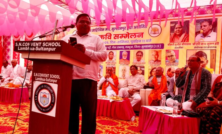 लम्भुआ गौड़ की आवाज ब्यूरो सुलतानपुर: जिला के जनपद के लम्भुआ तहसील क्षेत्र के गांव जयपालपुर ,कुबेरशाह पट्टी में बैजनाथ साहित्यिक मंच सुलतानपुर के तत्वावधान में 18अक्टूबर 2025 धनतेरस पर्व पर सरस कवि सम्मेलन का आयोजन किया गया।जिसकी अध्यक्षता राजर्षि हनुमान प्रसाद सिंह अभिषेक और मुख्य अतिथि लोक भूषण आद्या प्रसाद सिंह प्रदीप विशिष्ट अतिथि के रूप में रमेश यादव उप शिक्षा निदेशक, सुनील श्रीवास्तव आयकर अधिकारी मंचसीन रहे।कुशल संचालन कवि हरिनाथ शुक्ल हरि ने किया।संस्था की संस्थापिका काव्यानुरागी विदुषी सुनीता श्रीवास्तव पत्नी अनिल श्रीवास्तव तीब्र बीमारी से राहत मिलने से अपने आवास पर सप्ताह भर से चल रहे महामृत्युंजय जाप पूर्णाहुति के उपरान्त कवि सम्मेलन और भण्डारे का आयोजन किया। पधारे कवियों और विशेष अतिथियों का अंगवस्त्र, पुष्प पत्र से सम्मान किया गया।कार्यक्रम का शुभारंभ प्रतिभा पाण्डेय की वाणी वंदना से हुआ। कवियत्री सपना मिश्रा ने-मेरी आवाज को एक नई आवाज दे देना। राज बहादुर राना ने-महुआ महरानी नमो नमः ,पढ़के नशे पर व्यंग्य प्रहार किया।अनुपम द्विवेदी-द्वार खुला जंगल ज्यों ही।पवन कुमार सिंह ने अवधी कविता-अबहु का भारत देश महान। गजलकार दिनेश तिवारी दानिश-भावना प्यार की मर न जाए। राजेन्द्र पाण्डेय गड़बड़ ने जवान किसान की गौरव में -दुइनौ देशवा कै शान,पढ़ा।अमन सुल्तानपुरी ने-ओ ही भगवान है दुनियां को चलाने वाला।महान साहित्यिक विभूतियों आशुकवि मथुरा प्रसाद सिंह जटायु, डॉ ओंकार नाथ द्विवेदी, डॉ सुशील कुमार पाण्डेय साहित्येन्दु,नरेंद्र शुक्ल, डॉ राम प्यारे प्रजापति,राम गोपाल शुक्ल तपिश,अर्जुन पाण्डेय, डॉ सरिता सिंह ने अपने उत्कृष्ट विचारों और काव्य धारा में जन मानस को सराबोर कर खूब तालियां बटोरी। अध्यक्षीय संबोधन में अभिषेक ने साशिर्वाद समापन किया।