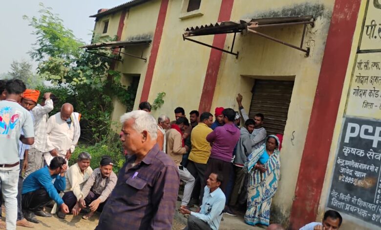 सुबह से ही खाद के लिए लगी लम्बी कतारें
