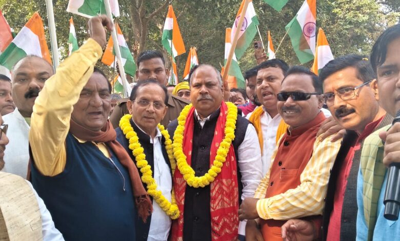 जयसिंहपुर गौड़ की आवाज ब्यूरो सुलतानपुर जिला के सदर विधानसभा क्षेत्र में बुधवार को भारतीय जनता पार्टी के प्रदेश उपाध्यक्ष वृज बहादुर, जिलाध्यक्ष सुशील त्रिपाठी व सदर विधायक राज प्रसाद उपाध्याय के नेतृत्व में सरदार वल्लभभाई पटेल की 150 वीं जयंती अवसर पर एक विशाल एकता यात्रा निकाली गई।सदर विधायक के पार्टी और जनसंपर्क कार्यालय मुईली चौराहा से पंडित जुग्गीलाल शिक्षण संस्थान होते हुए आगे बढ़ते हुए डी हाल मार्क स्कूल बगिया चौराहा और बगिया चौराहा होते हुए पुरानी तहसील जयसिंहपुर तिराहे के बगल बाग में पहुंची।करीब 04 किलोमीटर की लंबी एकता यात्रा में हजारों की संख्या में आमजन,पार्टी पदाधिकारी और कार्यकर्तागण शामिल हुए।जयसिंहपुर पुरानी तहसील के सामने स्थित बाग में एक विशाल जनसभा का आयोजन किया गया।आयोजित जनसभा में मौजूद भीड़ को संबोधित करते हुए मुख्य अतिथि और पार्टी के प्रदेश उपाध्यक्ष वृज बहादुर ने लोगो को संबोधित करते कहा कि जिस ओर जवानी चलती है उस ओर जमाना चलता है।यह कहावत तो ठीक है लेकिन बिहार में हमारी बहनों ने बीडा उठाकर भाजपा को ऐतिहासिक वोट देकर जिताया।आप का आशिर्वाद मोदी व योगी के साथ है । कार्यक्रम को सदर विधायक राज प्रसाद उपाध्याय राज बाबू और भाजपा जिला अध्यक्ष सुशील मिश्र और अन्य पदाधिकारियों ने भी संबोधित किया और सभी को एकता का संदेश दिया।इस मौके पर क्षेत्रीय उपाध्यक्ष संत बख्श सिंह उर्फ चुन्नू, पूर्व जिला अध्यक्ष डा.आर ए वर्मा, डा.सीतासरन त्रिपाठी,पूर्व विधायक अर्जुन सिंह,यात्रा प्रमुख धर्मेंद्र कुमार,सह यात्रा प्रमुख आनंद दूबे,विपिन सिंह उर्फ विवेक सिंह,जिला मंत्री राजेश सिंह,नरेंद्र सिंह,मोतिगरपुर ब्लॉक प्रमुख चंद्र प्रताप सिंह उर्फ चंदर,जयसिंहपुर ब्लॉक प्रमुख राहुल चंद्रशेखर शुक्ल,यात्रा मीडिया प्रभारी रमेश अग्रहरि,रत्नेश तिवारी,बृजेश श्रीवास्तव,पंडित दिलीप चतुर्वेदी,