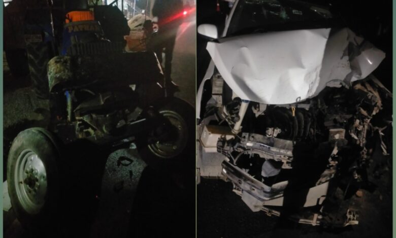 ट्रैक्टर व कार में आमने-सामने की जोरदार टक्कर,कोई हताहत नहीं